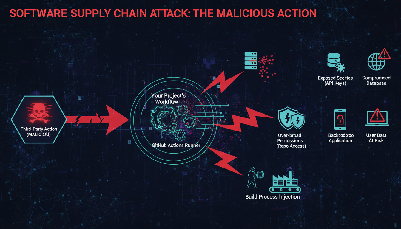 GitHub Actions security issues have recently raised serious software supply chain concerns by exposing CI/CD secrets and tokens through compromised workflows, making thousands of repositories vulnerable to credential leakage.